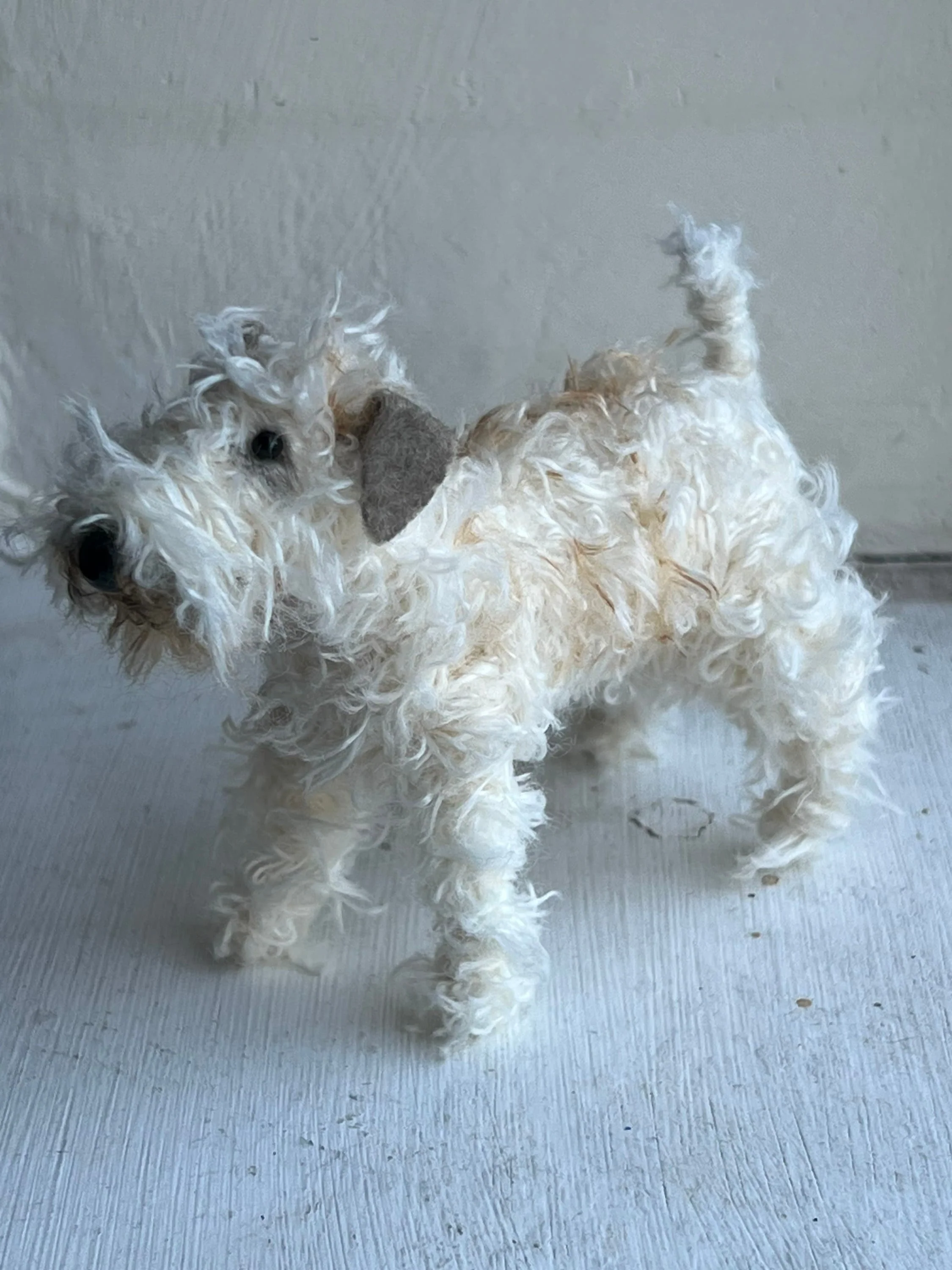 A poseable Wheaten Terrier, about 7.5cm tall, made by Sarah. Sadly not suitable for children due to small parts.